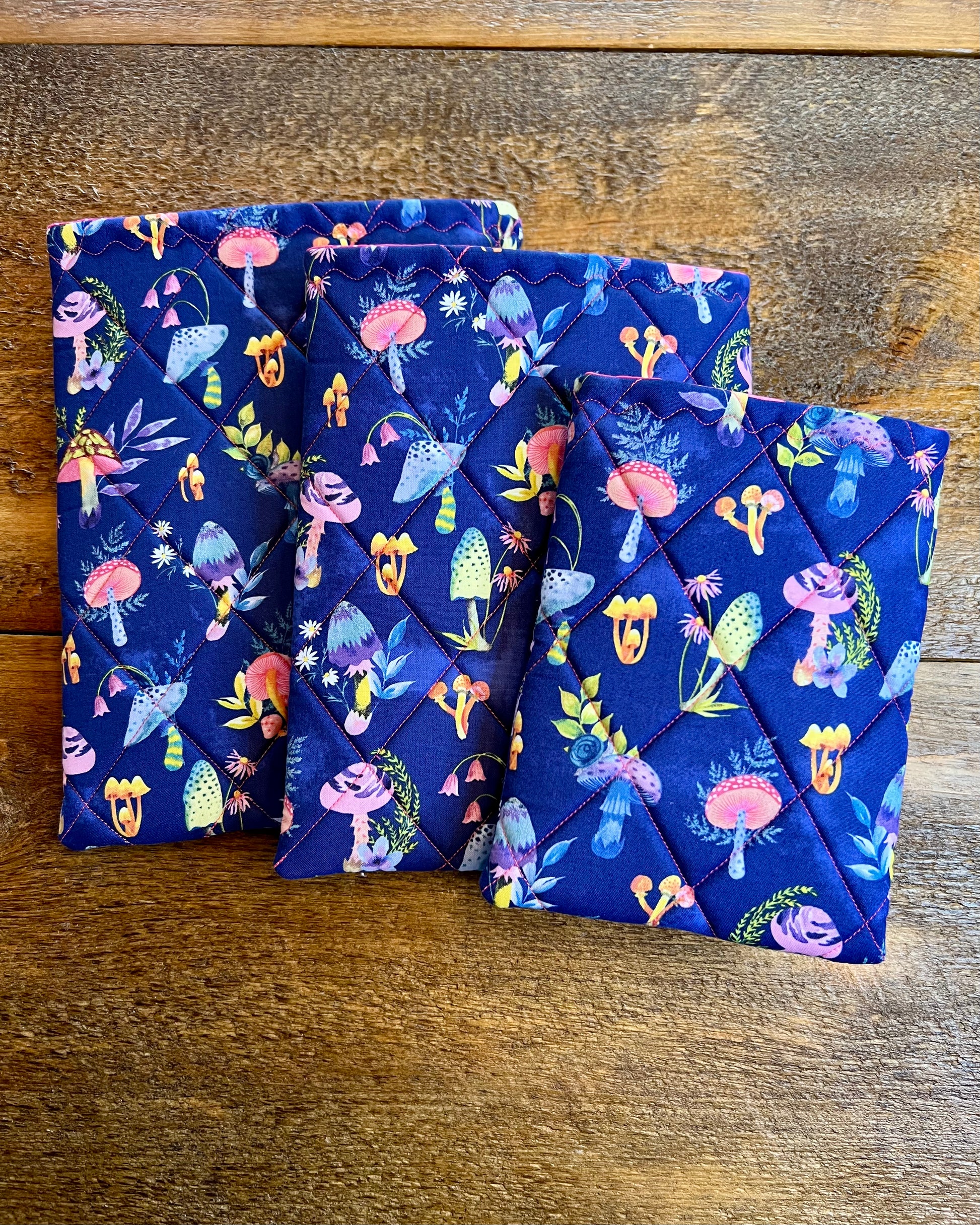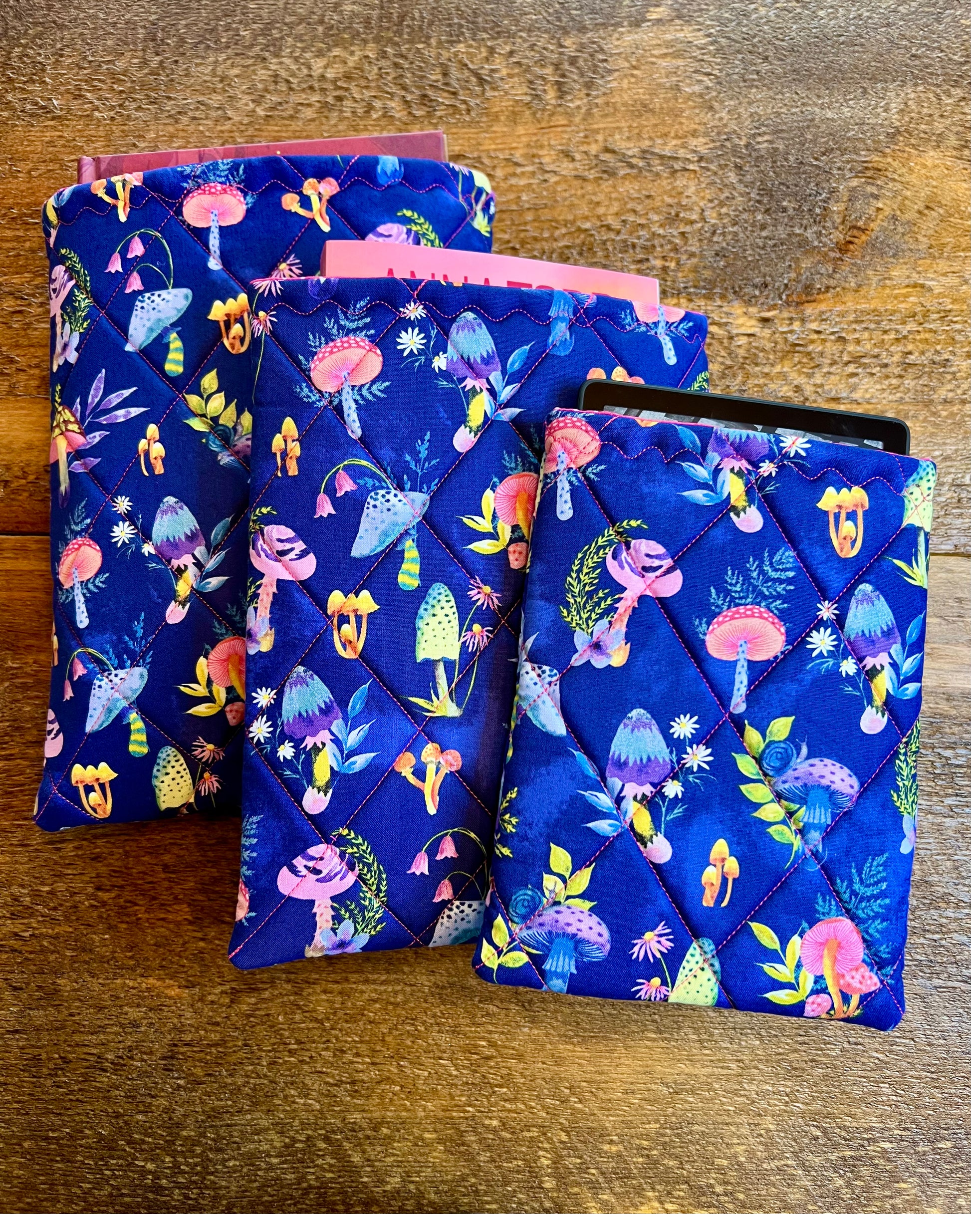 Protect your favorite reads and devices in style with our handmade quilted sleeves, designed for books, iPads, Kindles, and tablets. Each sleeve is padded, lightweight, and made with unique fabric—so no two are ever the same.