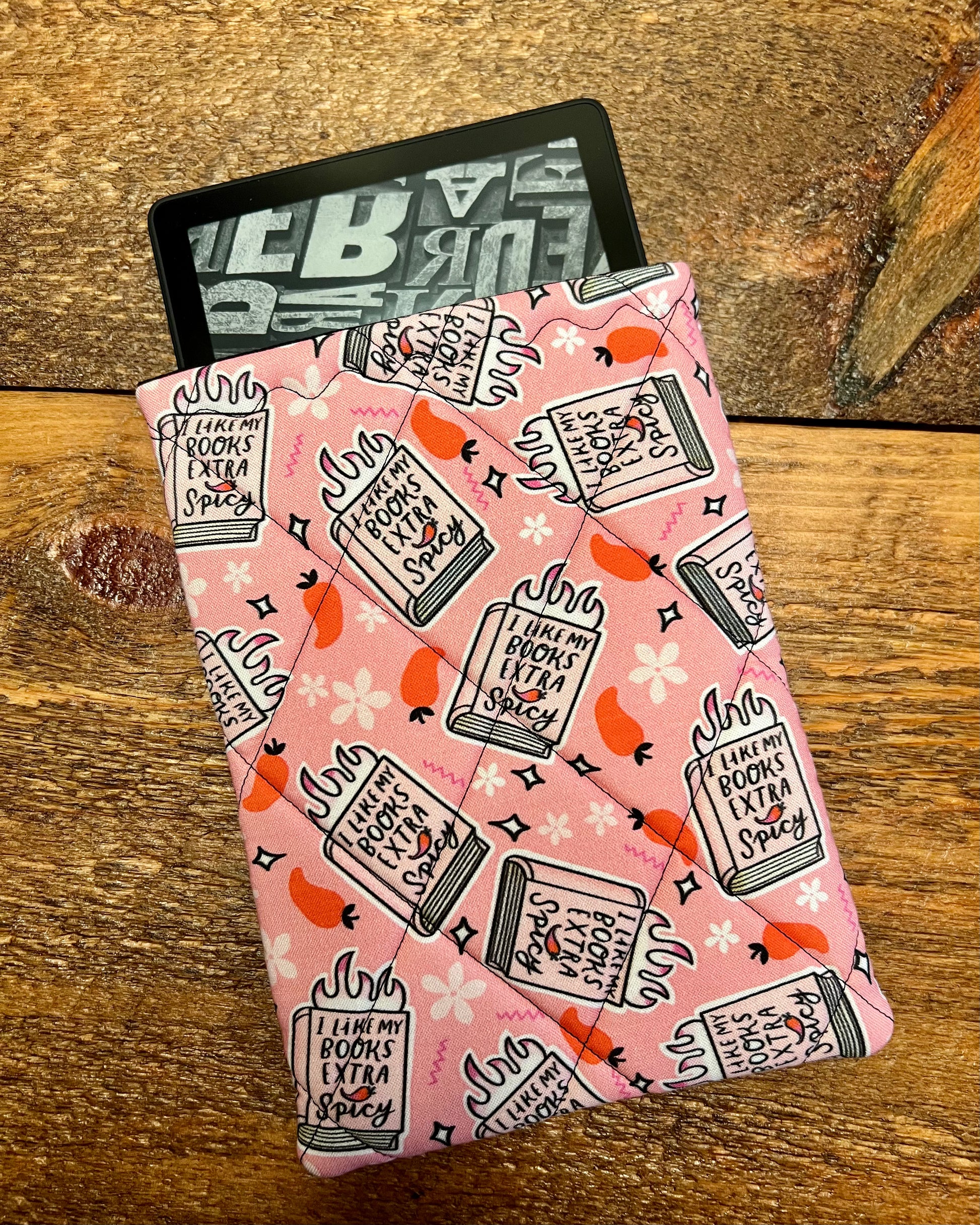 Protect your favorite reads and devices in style with our handmade quilted sleeves, designed for books, iPads, Kindles, and tablets. Each sleeve is padded, lightweight, and made with unique fabric—so no two are ever the same.